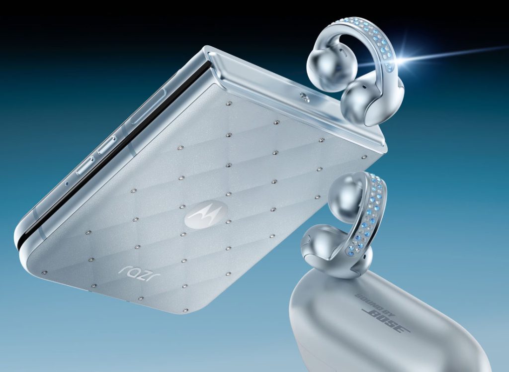 motorola has introduced “The Brilliant Collection,” a new product bundle created in partnership with Swarovski. The collection features a special edition of the foldable motorola razr smartphone and the moto buds loop open-ear earbuds, both of which are encrusted with crystals by Swarovski.