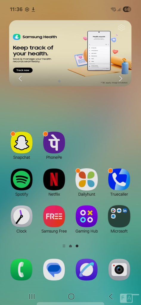 Apart from the usual set of utility apps and Google Apps, the smartphone comes with Netflix, Truecaller, Snapchat, PhonePe, DailyHunt, Spotify and Microsoft apps such as Microsoft 365, OneDrive, Outlook and LinkedIn. You get the option to install apps when you are setting up the phone, which you can choose not to. It also has Samsung Wallet via NFC. The phone doesn’t have ads, but shows notifications of new Samsung products occasionally.