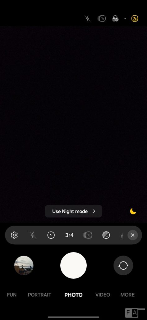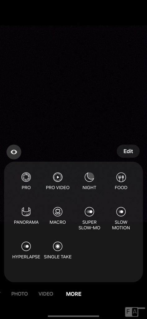You can choose 50MP option from the aspect ratio settings on the top. It also has scene optimizer, Pro mode, Pro video, Night, Macro, Panorama, Food, Super Slow-mo, Slow motion, Hyperlapse and single take. There is also a wide-angle option for the front camera.
