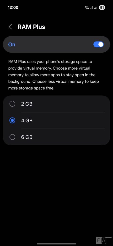 Unlike the AI features in the flagship S series phones, the M36 5G only gets has generative wallpapers. The Device maintenance option lets you manage your device’s battery life, storage, RAM usage, and security all in one place. Out of 128GB (UFS 2.2) storage in our unit, 104GB is free. Out of 6GB LPDDR4x RAM, about 5.4GB is usable and 2.2GB is free when default apps are running in the background. There is also a RAM Plus feature, which uses the internal memory of the phone to expand the RAM by an extra 6GB, in addition to the existing 6GB of RAM. This is enabled automatically, but it can be disabled.