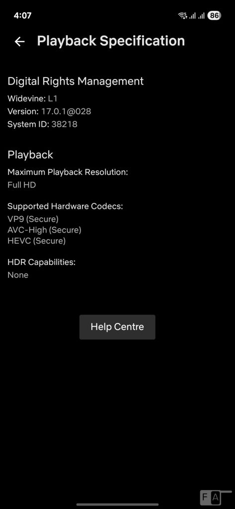 The phone comes with Widevine L1 support out-of-the-box so that you can enjoy HD content on Netflix, Amazon Prime Video, Hotstar and other streaming apps. There is also HDR playback support for YouTube, but it doesn’t work with Netflix.