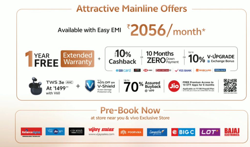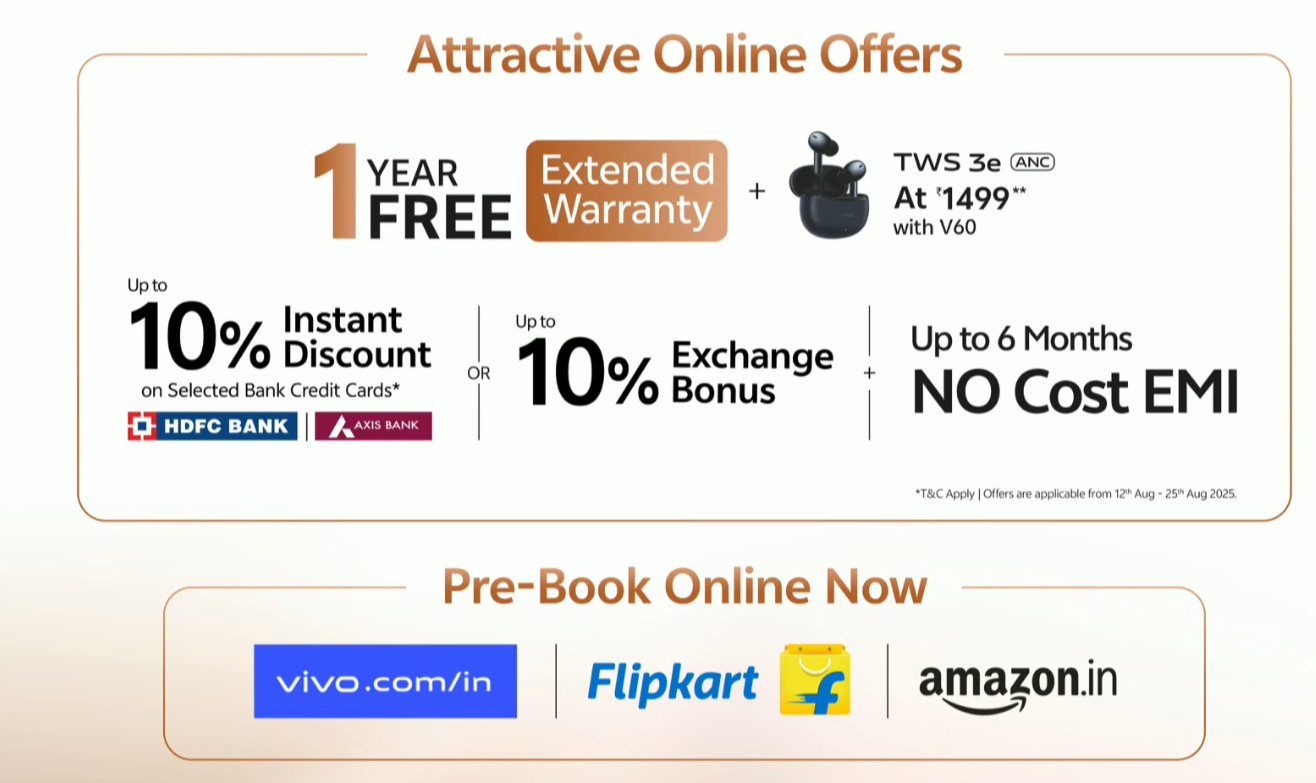 Pre-booking starts today, August 12th on vivo.com, Amazon.in, Flipkart and offline stores, and the phone will go on sale from August 19th.