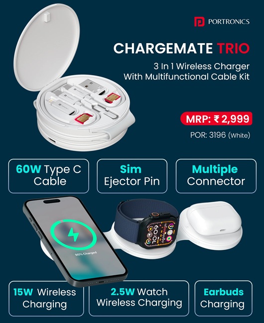 Portronics has introduced the ChargeMate Trio, a compact 3-in-1 wireless charger designed to power multiple devices while providing organized storage for travel essentials.