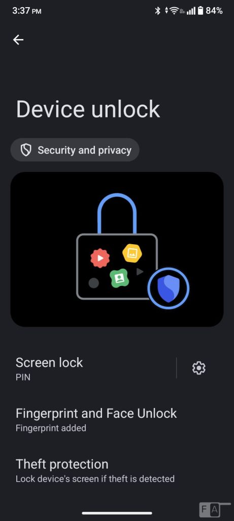 The phone has a fingerprint sensor on the side. It immediately unlocks the phone just by keeping your finger so that you don’t have to press it, and it is obviously faster than the in-display fingerprint scanner. You can add up to 5 fingerprints. You can also use the fingerprint for app local and payments in apps. The phone also has face unlock, but it is not as secure as fingerprint.