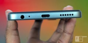 The 3.5mm audio jack, primary microphone, USB Type-C port and the loudspeaker grill are present on the bottom. It doesn’t have a secondary microphone.