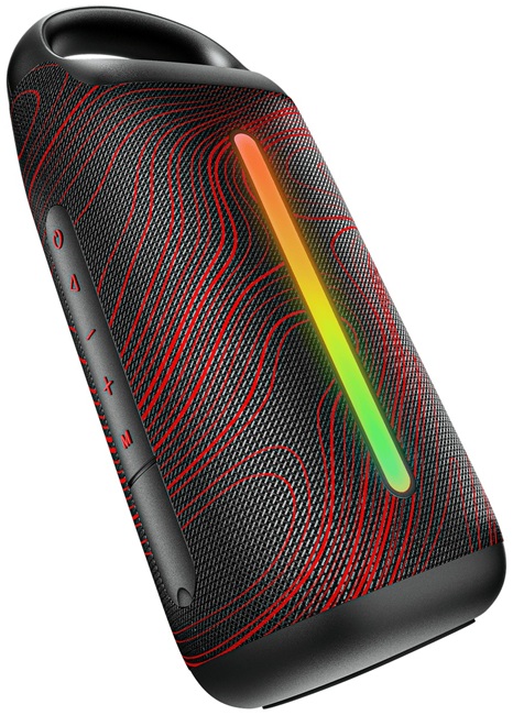 It includes Broadcast Mode to wirelessly sync audio across multiple Arc speakers, creating a wider soundstage. The speaker is IPX5 splash-proof and provides up to 12 hours of battery life with RGB enabled.