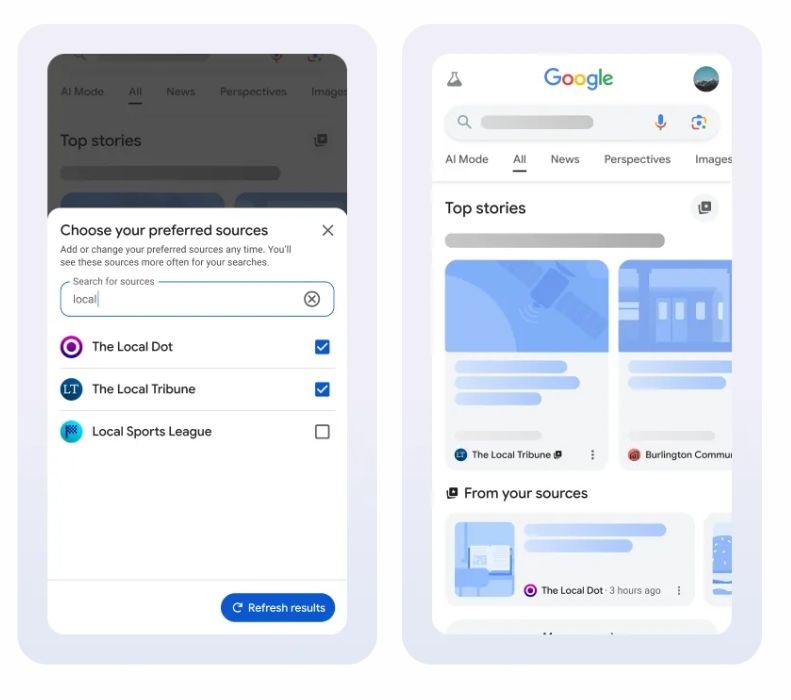 Google Search is receiving a new feature that allows users to personalise their search results even further. Users can now choose their preferred sources—whether it’s their favourite sports blog or a local news outlet—so that more of their articles are prominently displayed within Top Stories in regular search results.