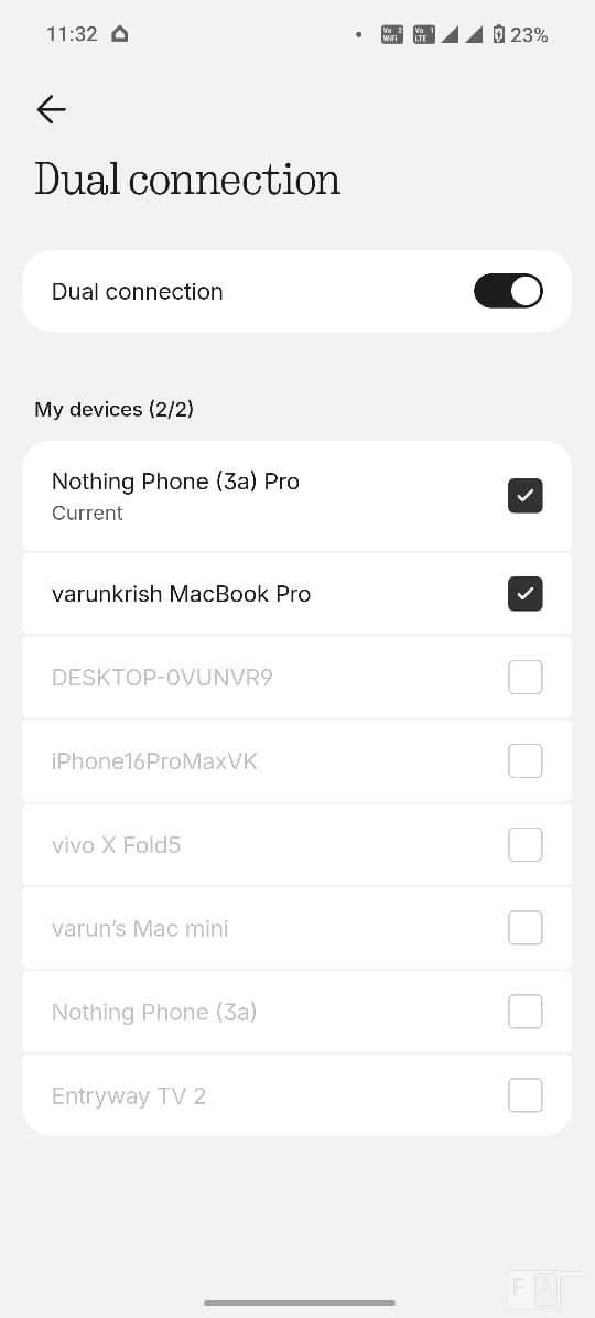For the traveling professional, call quality and connectivity are paramount. The AI-powered Clear Voice Technology, which utilizes a 4-mic ENC architecture, does an admirable job of isolating speech from background noise. Connectivity is, simply put, excellent. The Dual Connection feature works seamlessly, allowing for effortless switching between an iPhone, PC, and Mac. Managing audio settings via the Nothing X app on one device while listening on another is a prime example of the fluid ecosystem Nothing aims for. Support for Bluetooth 5.3, Google Fast Pair, and Microsoft Swift Pair further enhances the stable and user-friendly connection experience.