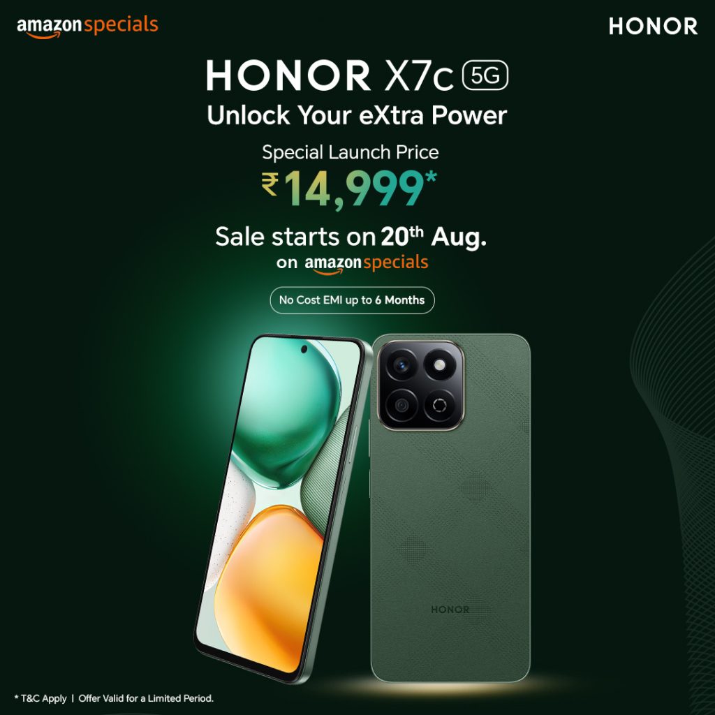 The HONOR X7c 5G comes in Forest Green and Moonlight White colours and is priced at Rs. 14,999 for the single 8GB + 256GB version, which the company says is a limited-period offer till August 22nd. There is no-Cost EMI up to 6 months.