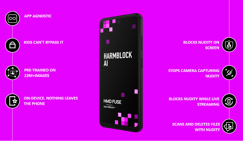 HMD Global has introduced HMD Fuse, the company’s latest smartphone for Children. The company says that it is the world’s first smartphone that prevents children from filming or sending nude content, and from seeing or saving nude and sexual images – even within a livestream with HarmBlock+ with HarmBlock AI from SafeToNet.