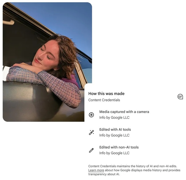 Google is adding C2PA Content Credentials in the Pixel 10 camera app, covering images taken with or without AI. Within Google Photos, users will be able to view details on how an image was captured or edited.