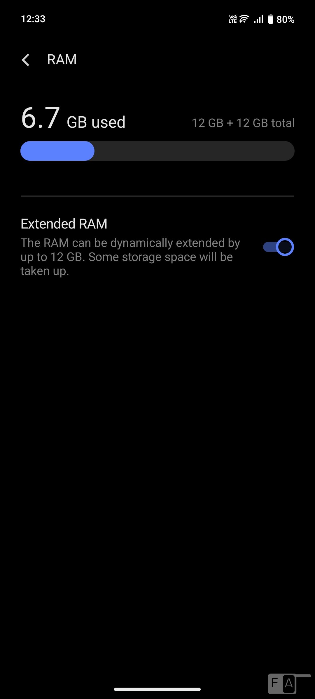 Out of 12GB of LPDDR4X RAM, about 11.19GB is usable, out of which 4.5GB is free when the default apps are running in the background. There is an additional 12GB RAM expansion feature. Out of 256GB of UFS 2.2 storage, 221GB is free out of the box.