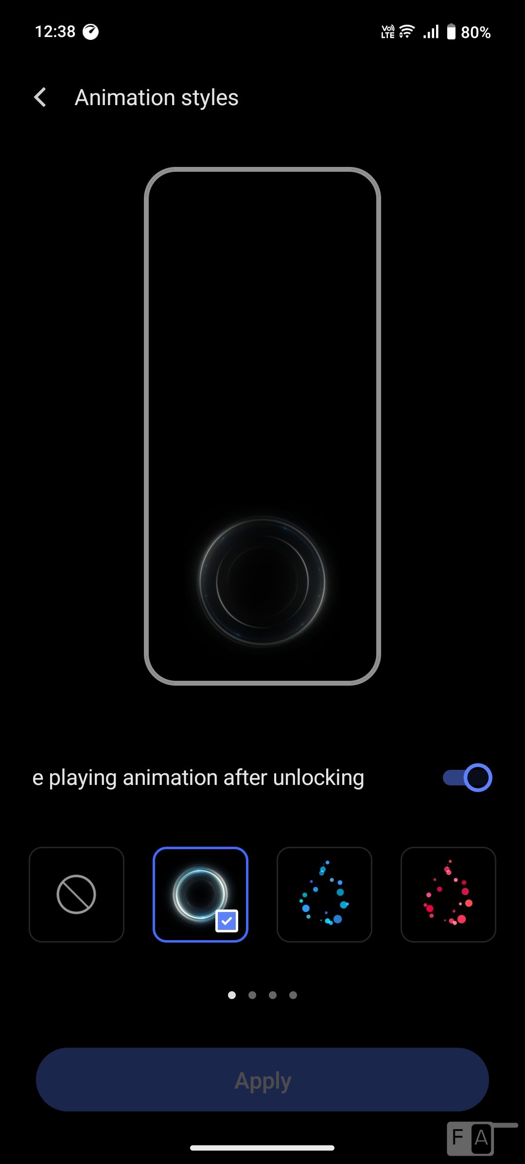 The phone has an optical in-display fingerprint sensor which immediately unlocks the phone just by keeping your finger on the sensor. You can add up to 5 fingerprints. There are different animation styles that display when you unlock, which you can disable. The phone also has face unlock that can unlock the phone in seconds, but it is not as secure as fingerprint.
