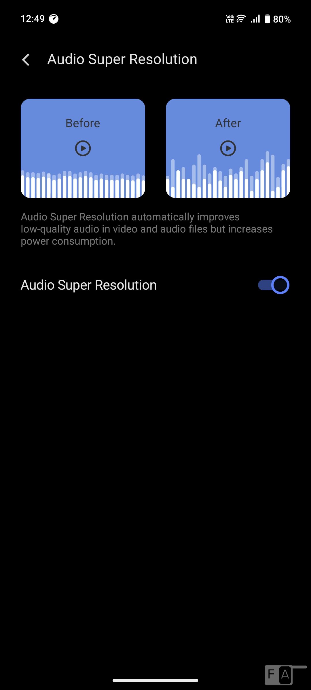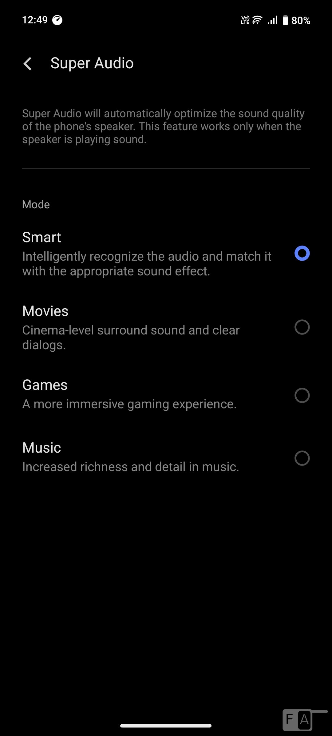 The default Music Player also has equalizer and DeepField sound effects. It doesn’t have FM Radio support. There is audio super resolution, and super audio features. Audio through the stereo speakers and through the headphones are good.