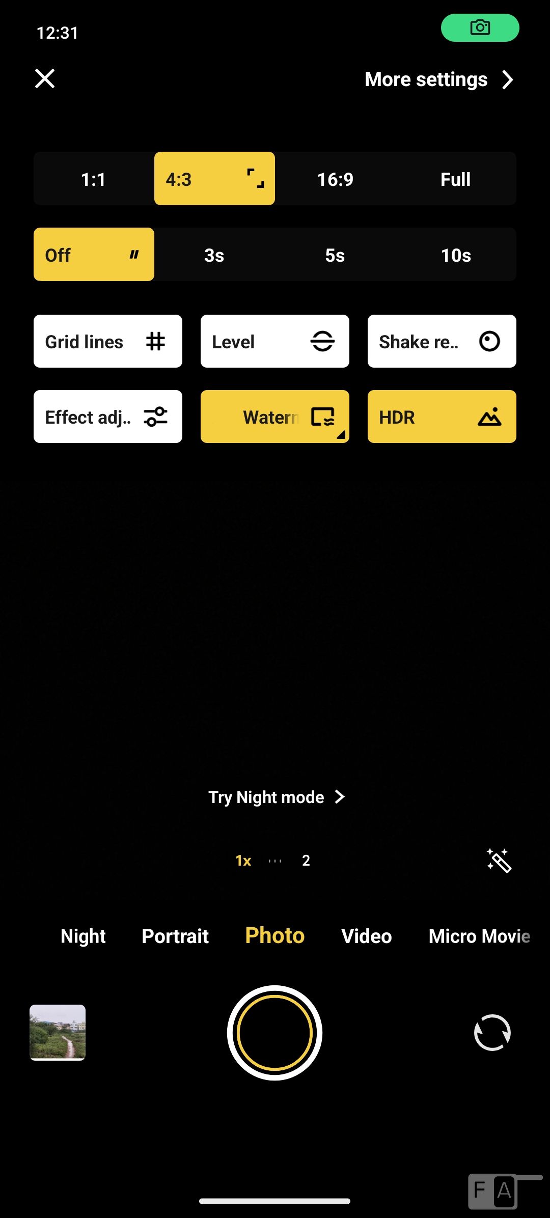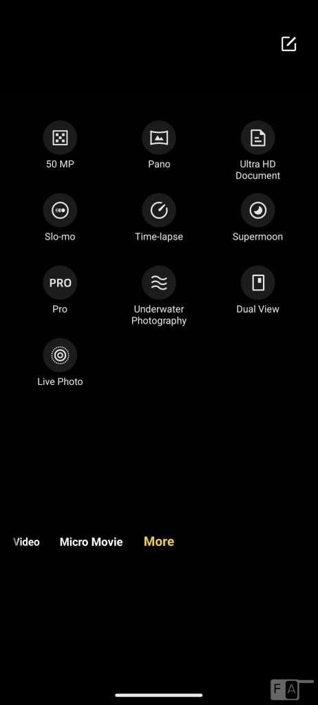 The camera UI is the same as other phones running Funtouch OS. It includes several features such as AR stickers, long exposure, 50MP mode, supermoon, underwater mode and more. Even though the phone has a 50MP rear camera, the final output is 12.5MP in size after pixel binning, and the front camera output is 32MP.