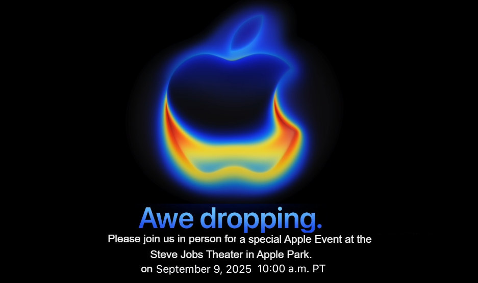 Apple has officially announced its special event on September 9th. It says ‘Awe Dropping’ and has a glowing Apple logo.