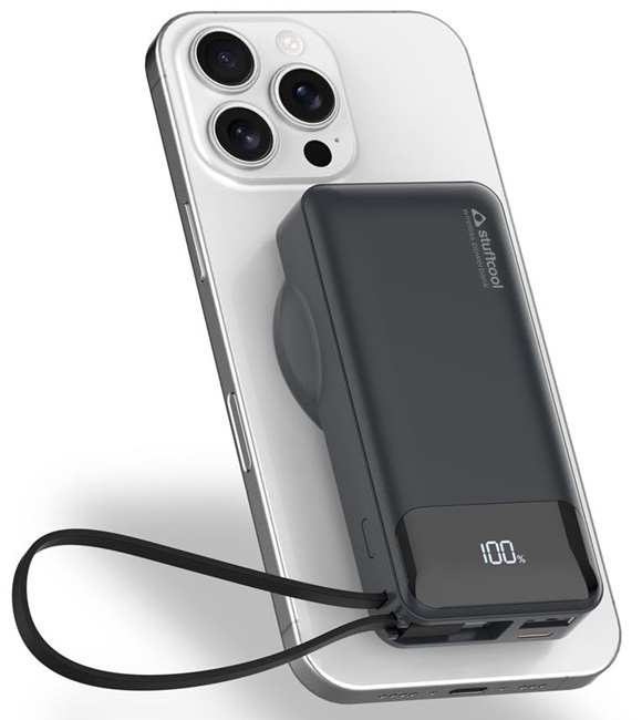 The powerbank supports multiple charging options. It delivers up to 15W MagSafe-compatible wireless charging for iPhones, while the built-in 20W Type-C cable enables fast charging for devices such as Samsung and Pixel. With its 22.5W USB-A port, the powerbank offers fast charging compatibility for OnePlus, OPPO, and realme phones.