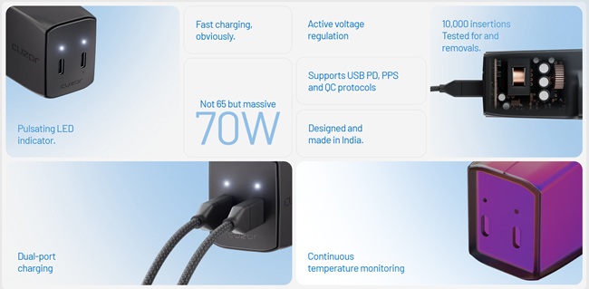 Cuzor Labs has launched the Pulse 70W, India’s first 70W GaNSense charger completely designed and built in the country.