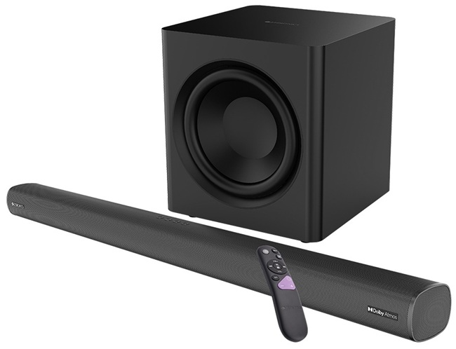- Package Contents: Soundbar, Subwoofer, Remote, Input Cable, HD Cable, Wall Mount Bracket with Fasteners, QR Guide, Power Cords, Wireless Microphone