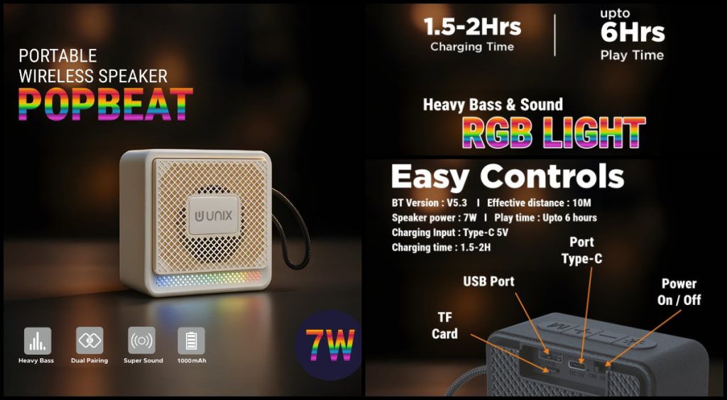 Unix India today announced the launch of its new portable speaker, Pop Beat, designed for easy portability while delivering clear, high-bass audio.