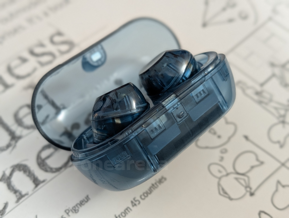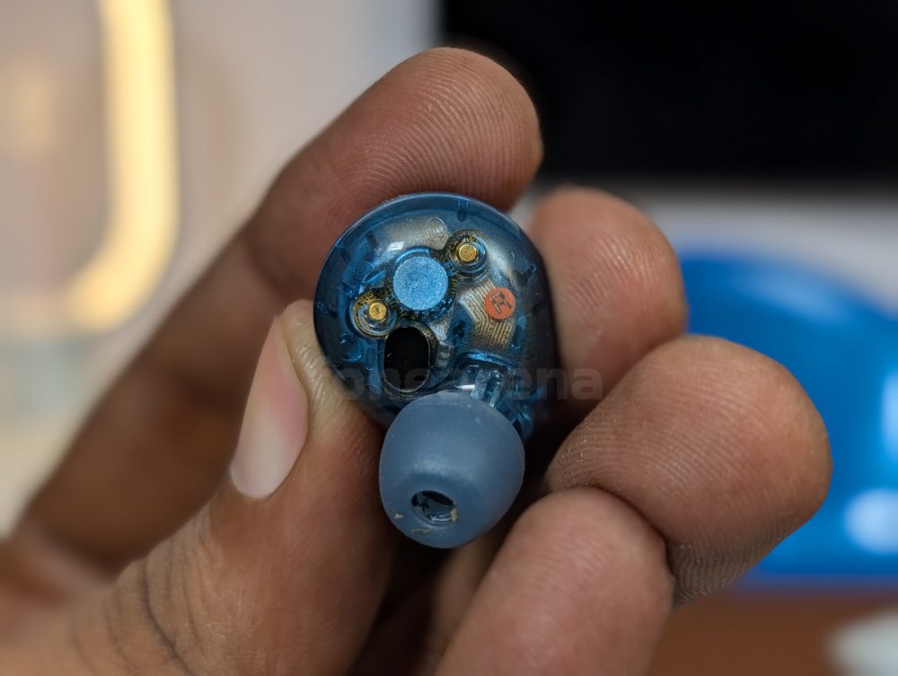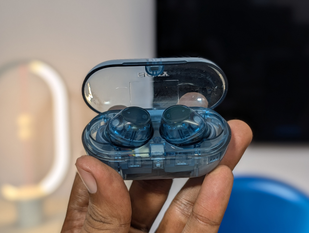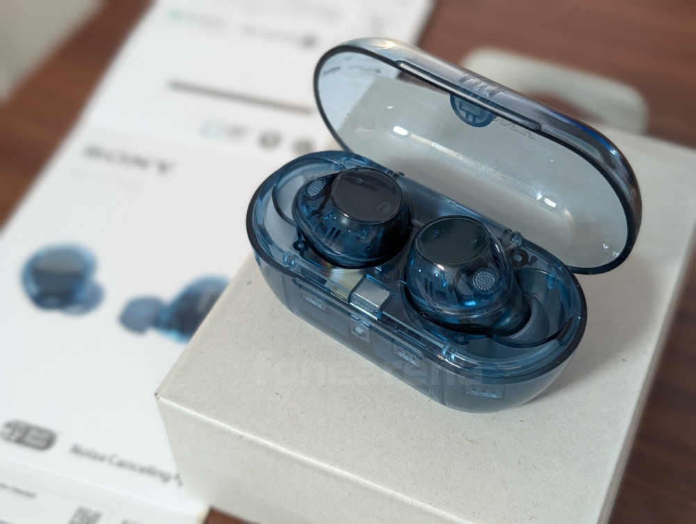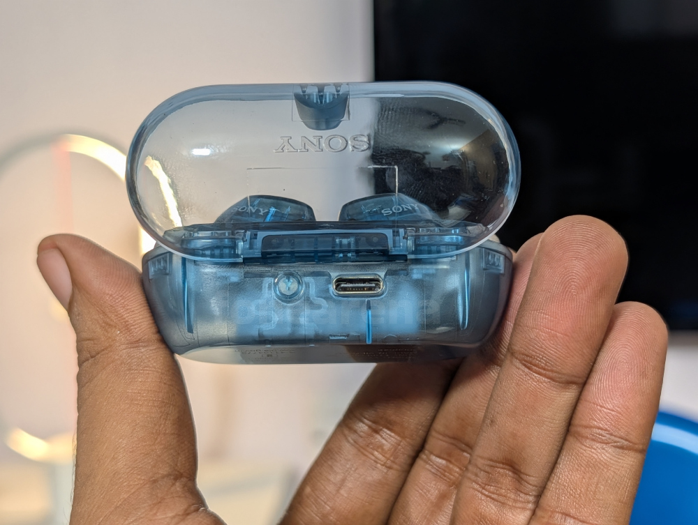 Right out of the box, the WF-C710N in its “Glass Blue” finish feels less like a standard retail product and more like a cool, experimental prototype. The translucent case and earbuds are a unique design choice that stands out. While my initial thought was that the glossy plastic might look a bit “tacky” to some, that feeling quickly fades. In hand, the build quality is unmistakably Sony, it’s solid, well-constructed, and feels durable. The case hinge is reassuringly firm, and despite my initial fears, it has resisted scratches better than expected.