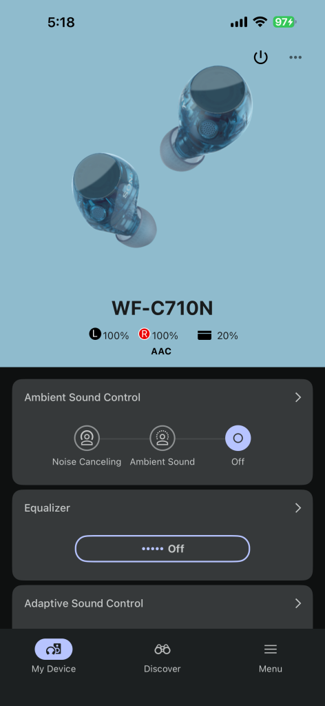 Let’s be frank: the out-of-the-box sound of the WF-C710N is a letdown. The default tuning is heavily bass-focused, leaving the audio feeling muddy and congested. The 5mm drivers struggle to provide clear separation, with lows, mids, and highs feeling “mish-mashed” together. It lacks the clarity and fidelity you expect from a product bearing the Sony name.