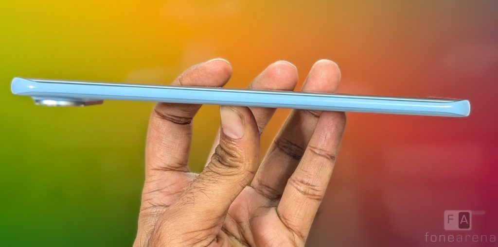 There is a 13MP front camera inside the tiny notch and the phone supports up to 2K 30 fps video recording. The earpiece is present on the top edge, but it doesn’t double up as a secondary speaker. It supports Dolby Atmos audio. There is a small bezel below the screen. It has an in-display fingerprint scanner.