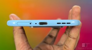 Coming to button placements, the power button is present on the right along with volume rockers. The dual SIM slot, primary microphone, USB Type-C port and the loudspeaker grill are present on the bottom. The secondary microphone is on the top. The phone also has an IR blaster which is present on the back, inside the camera deco.