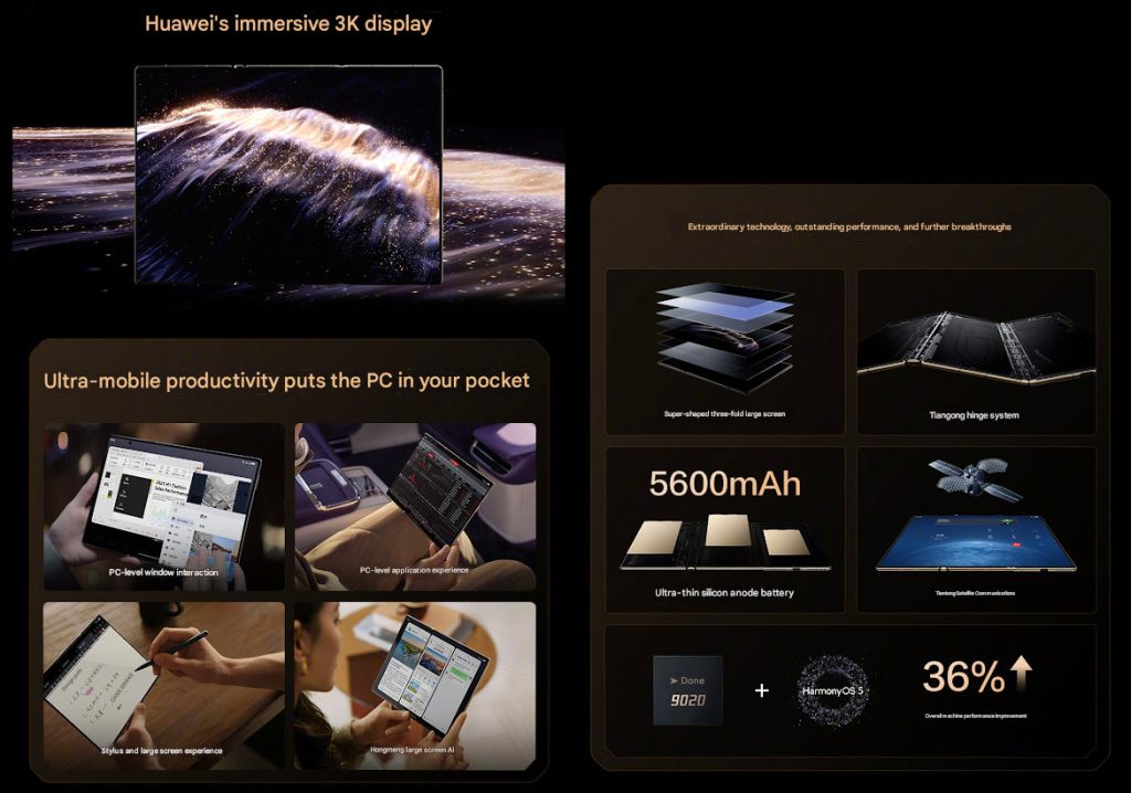 HUAWEI today introduced the Mate XTs Ultimate Design tri-fold phone in China as the successor to the Mate XT, which was introduced last year as the first world’s first smartphone with a tri-fold screen in production.