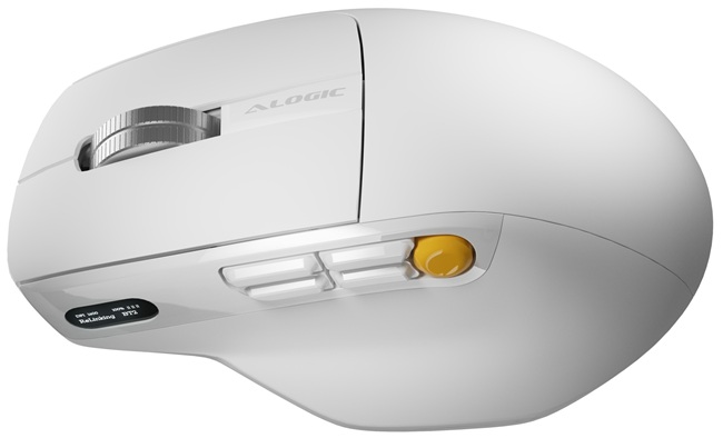 Its ergonomic design features near-silent main buttons, a thumb rest, and on-screen battery display. It supports Bluetooth and 2.4GHz connections for cross-platform compatibility.