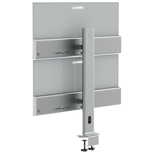 The optional Elevate Dual Vertical Monitor Mount allows two Edge monitors to be stacked vertically, expanding screen space for trading, financial monitoring, or security tasks. Magnetic cable management ensures a tidy workspace.