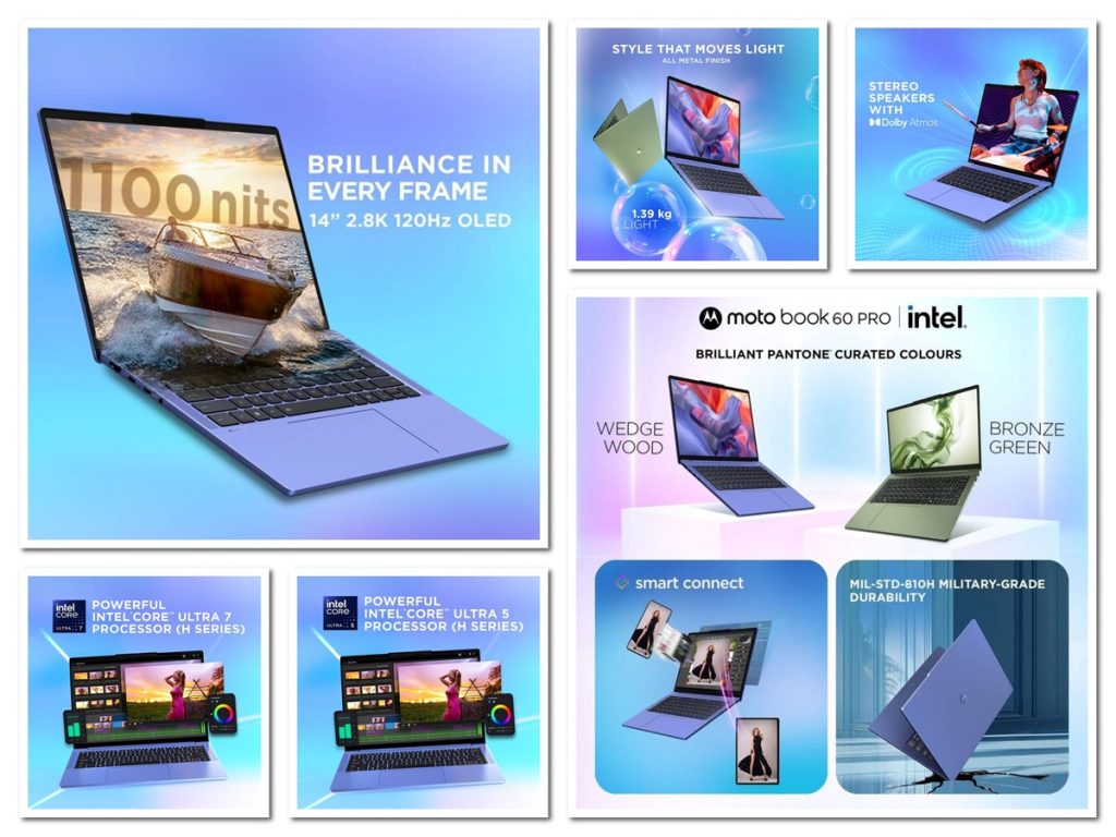 motorola has launched the motorola moto book 60 Pro laptop in India, expanding its moto book lineup. Weighing 1.39 kg, the laptop features a metal body and meets MIL-STD-810H military-grade durability. It is available in two Pantone-curated colors: Bronze Green and Wedge Wood.