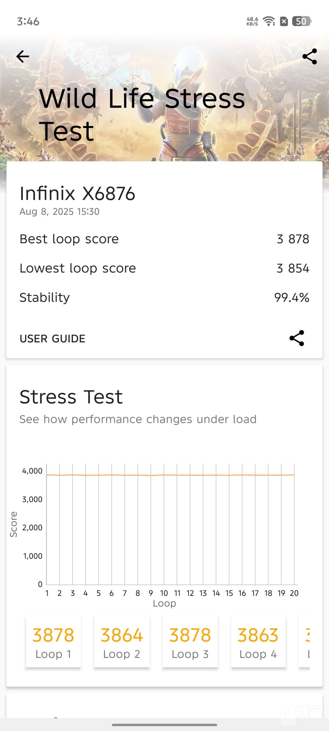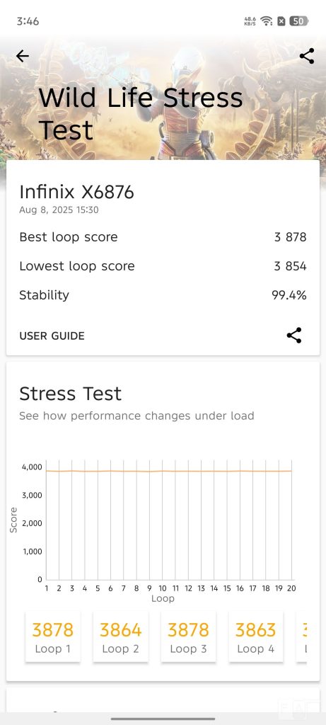 Application launch times, multitasking fluidity, and resource-intensive tasks reveal the limitations of the 7400, particularly in sustained usage scenarios. Synthetic benchmarks also place it clearly a notch below the 8350 Ultimate. However, Infinix has done a solid job optimizing XOS for this chipset. The thermal profile remains under control even during long sessions, and UI transitions stay smooth for the most part. Memory expansion helps with multitasking, but RAM management can be aggressive under load.