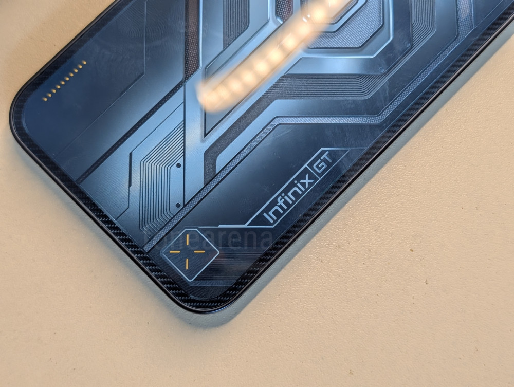 The GT 30 shares the same Cyber Mecha 2.0 design language as the GT 30 Pro. The rear panel has a similar structural layout with mecha-inspired patterns and a segmented LED lighting zone. However, instead of a multi-mode RGB LED system, the GT 30 comes with a single white LED strip that lights up for notifications, charging status, calls and customizable patterns within the X Arena suite. While the RGB on the Pro added more flair and customizability, the white LED here serves a similar purpose as a visual identifier and retains the same structural form factor.