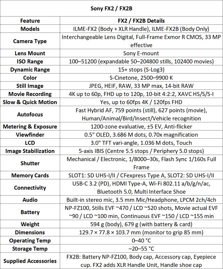 The Sony FX2 will be available in India starting today, through Sony Authorised Retail Outlets, Camera Lounge, Alpha Flagship Stores, Sony Center, ShopatSC.com, Amazon.in, Flipkart, and major electronic retailers. As a limited-time launch offer, customers will receive a free rechargeable battery worth Rs. 5,890 with both FX2 and FX2B models.