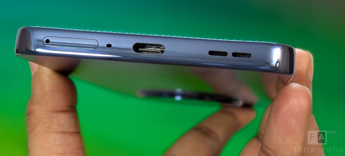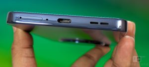 The power button and the volume rockers are present on the right. The dual SIM slot, primary microphone, USB Type-C port and the speaker grill are crammed in the bottom. The secondary microphone is on the top along with the IR blaster.