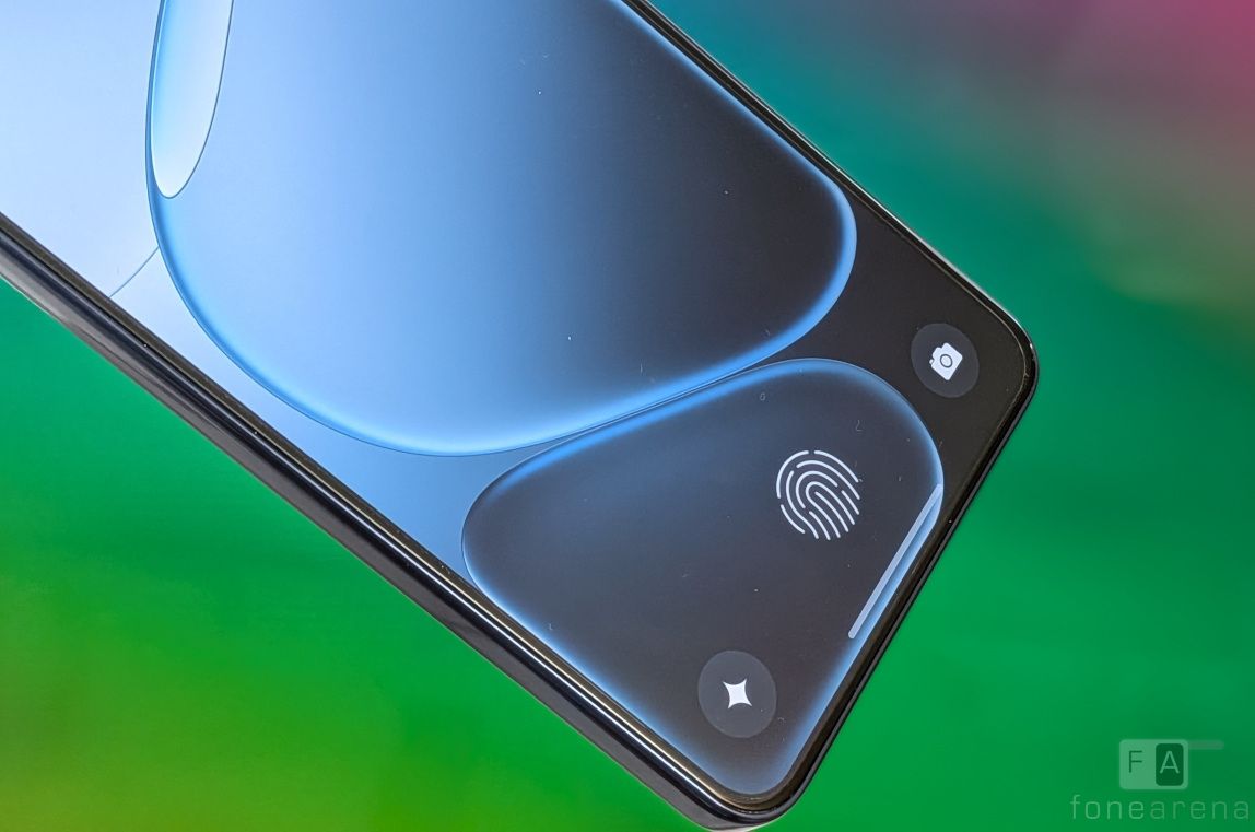 The phone has minimal bezels below the display. It has an in-display optical fingerprint scanner.