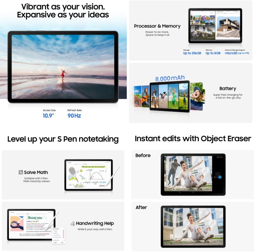 - 10.9-inch (2112×1320 pixels) WUXGA+ TFT display, 90Hz Refresh Rate