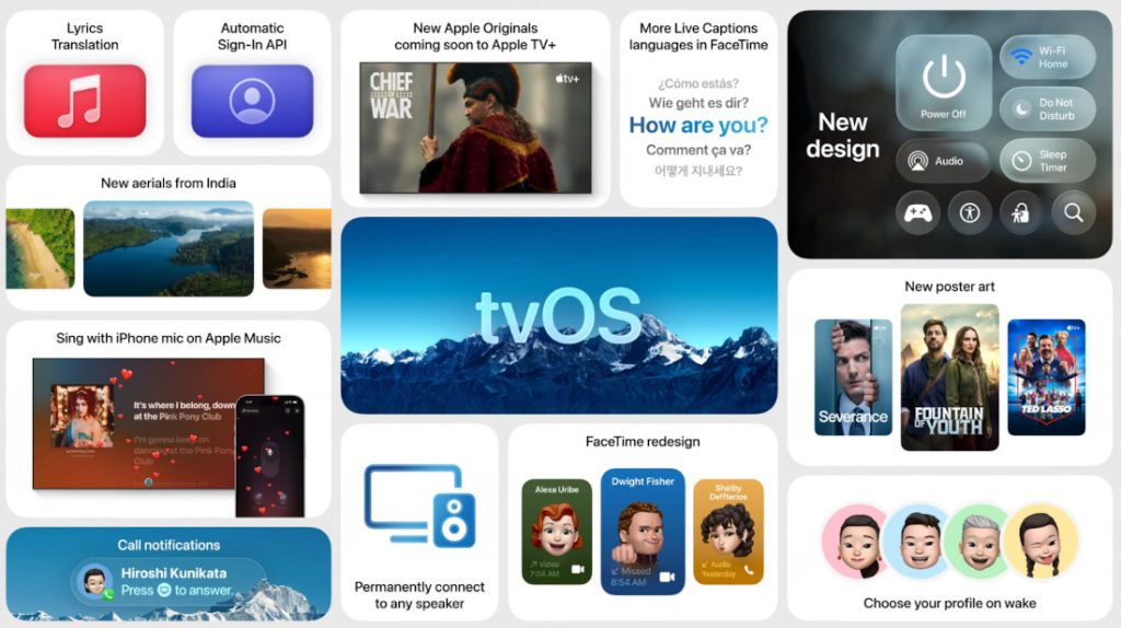 tvOS 26 refreshes the Apple TV interface and introduces Sing in Apple Music using iPhone as a wireless microphone. FaceTime Contact Posters and profile updates enhance personalization.