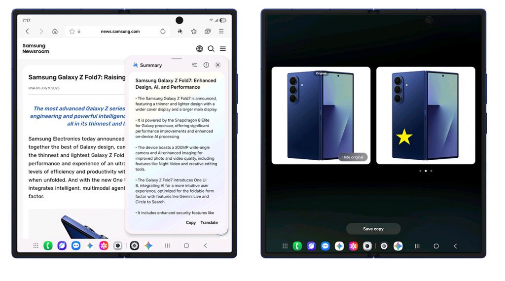 - For larger screens, Galaxy AI Optimized for Large Screens enables users to drag and drop AI-generated content directly into their workflow.