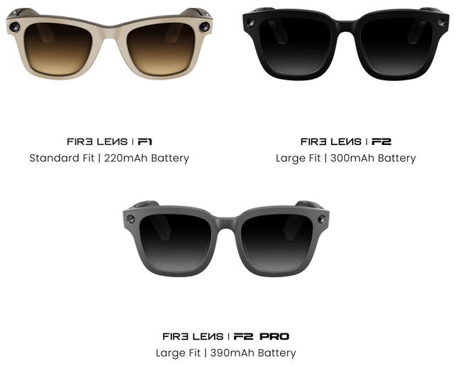 - FireLens F1: Standard fit, 220mAh battery, basic AI and audio features.