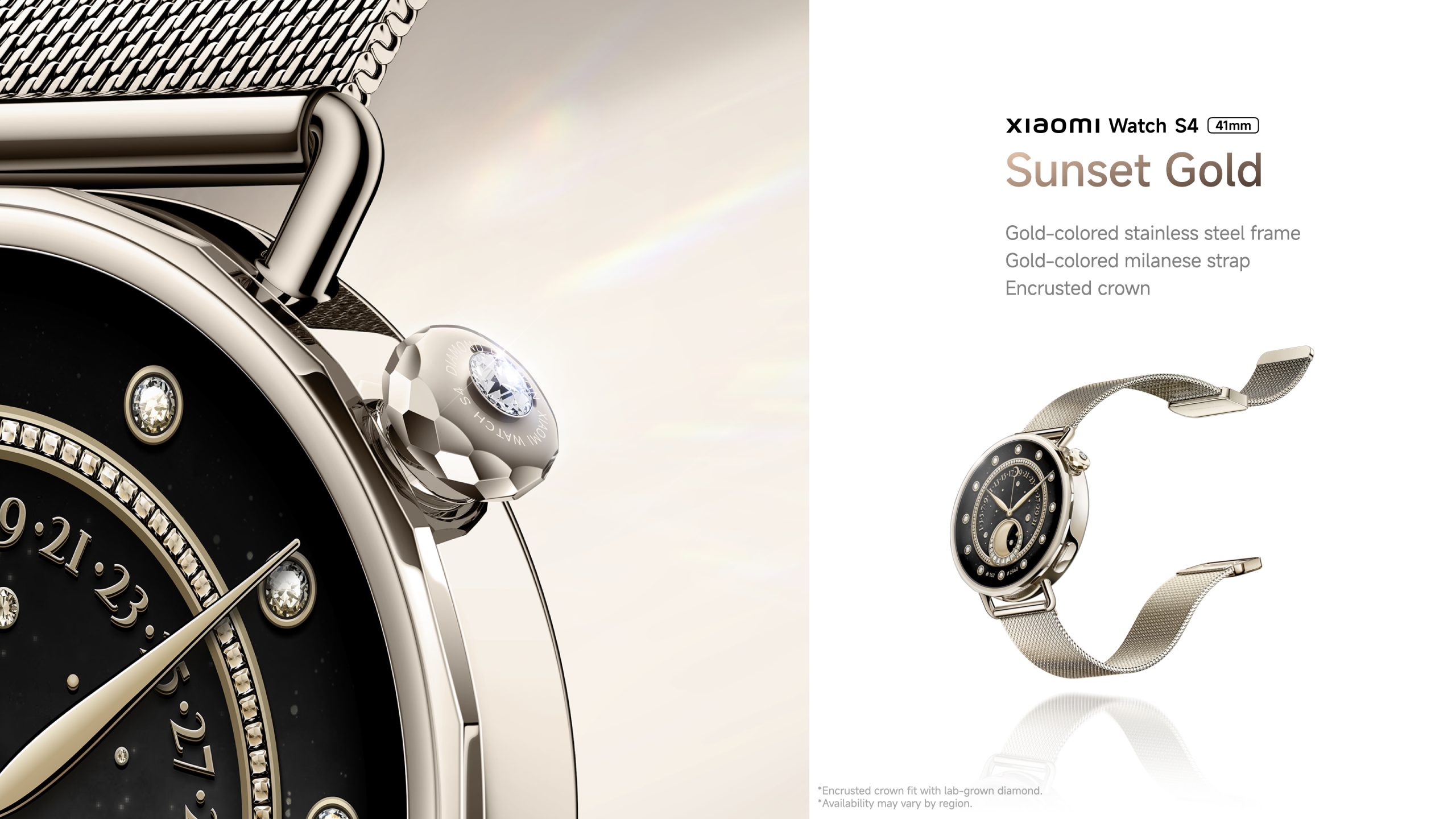 Xiaomi calls the Milanese strap option the special Sunset gold edition, which features a lab-grown diamond set on the crown, offering an elegant look. There are also over 200 watch faces available, including cute animal watch faces.
