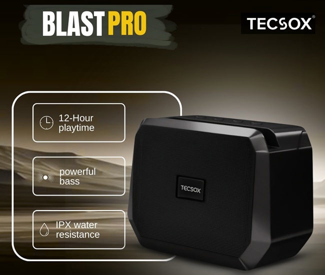 TecSox has expanded its audio range with the TecSox Blast Pro, a portable Bluetooth speaker suitable for indoor and outdoor use. According to the company, its compact design fits comfortably on a study table, in a backpack, or on a picnic mat.