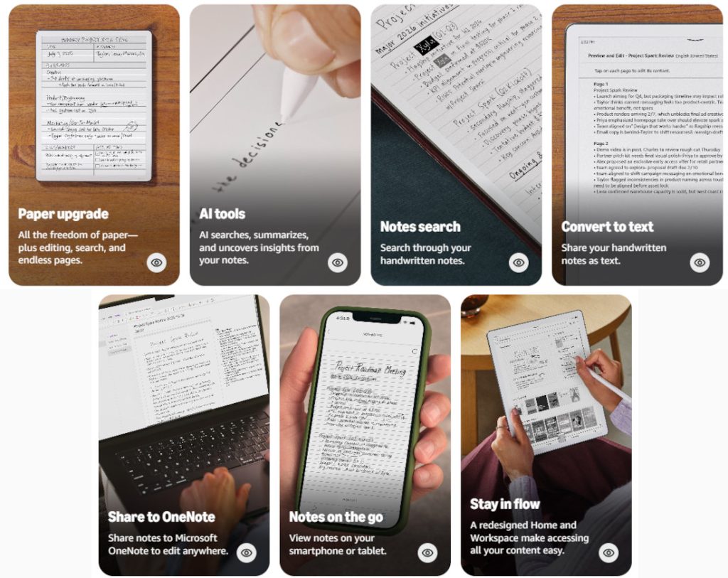 - AI-Powered Notebook: Users can search their handwritten notes using natural language queries, and the device will provide AI-generated summaries. An upcoming “Send to Alexa+” feature, planned for early next year, will allow users to have conversations with Alexa about their notes.