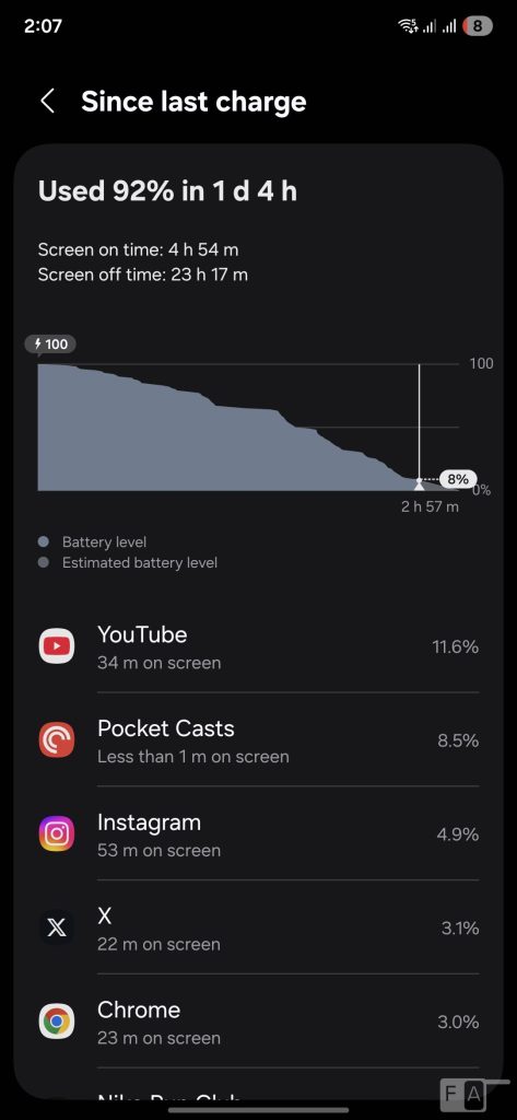 Coming to the battery life, the phone packs a 4900mAh (typical) built-in battery, compared to 4700mAh battery in the predecessor. It lasts for a whole day with 5G, dual SIMs, and heavy use. I got about 5 hours of screen on time with 24 hours of use with mostly on Wi-Fi, and occasional 5G use in 120Hz, which is decent for a phone with a 4900mAh battery. With heavy use it should be more.