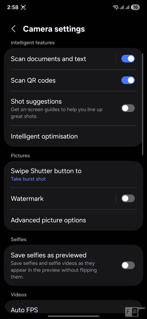 There are no changes in the rear camera sensors compared to the S24 FE. However, you can see changes in the UI. You can choose 50MP option from the aspect ratio settings on the top, and the default output is 12MP instead of 12.5MP after pixel binning. It also has AR stickers, scene optimizer, portrait video, director’s view, hyperlapse and more modes.