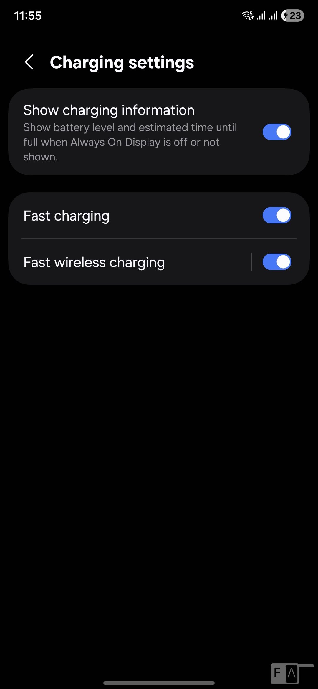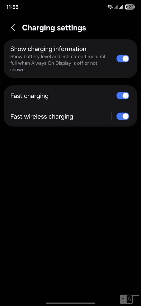 Samsung has finally upgraded the charging from 25W to 45W. It takes slightly over one hour to charge the phone fully using a 45W charger, and 0 to 50% takes about 30 minutes. It charges faster if the phone is turned off. Even with a 25W charger, it can charge under one and half hours. It still has 15W wireless charging support and wireless power share.