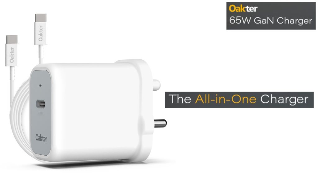 The Oakter 65W GaN Charger is priced at Rs. 1,399, comes in White, and is available for purchase on Amazon.in starting today.