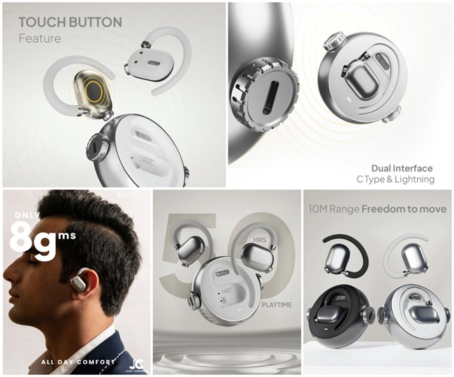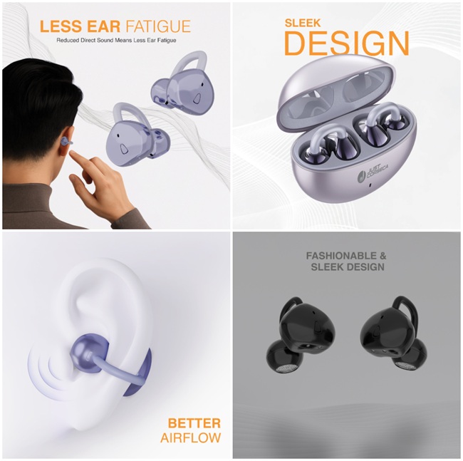 JUST CORSECA has announced its entry into the open-ear wireless stereo (OWS) category with the launch of STALK (JST 480) and SYNQ (JST 476) OWS earbuds.