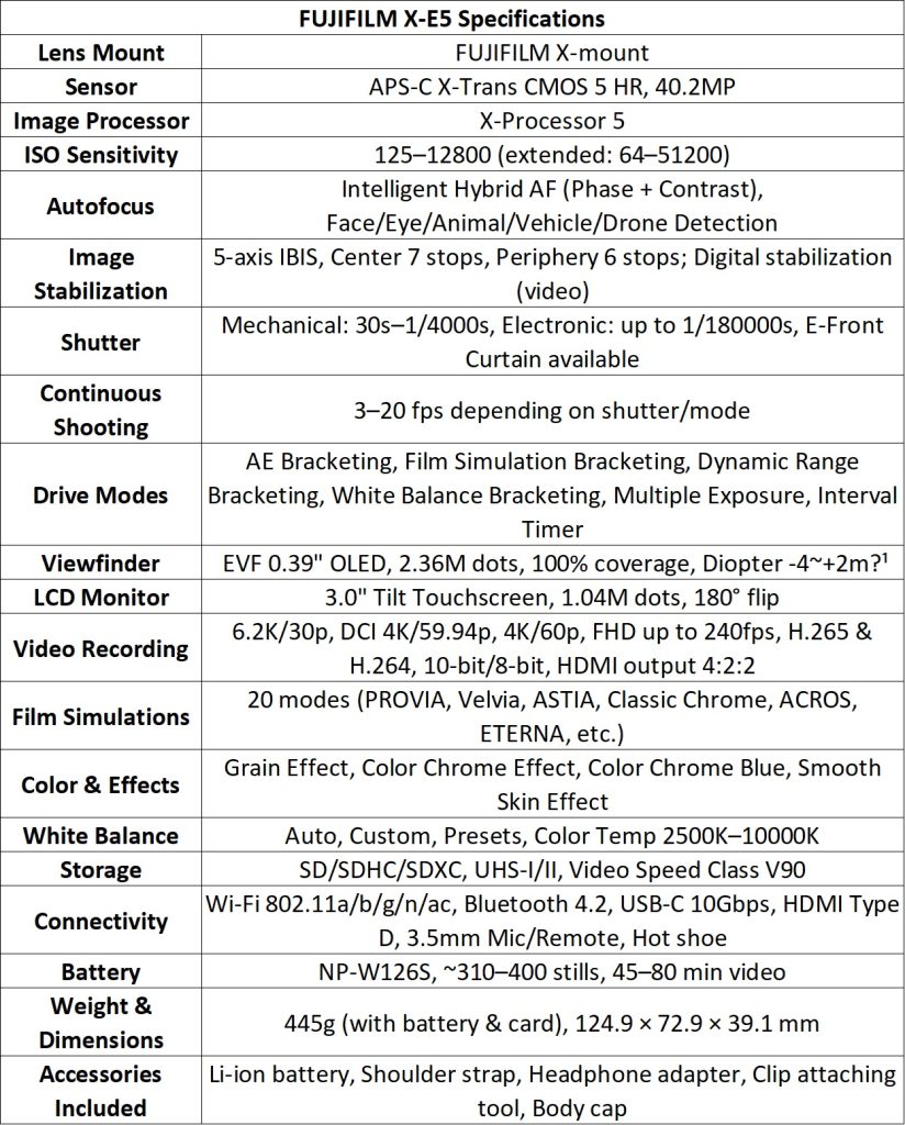 FUJIFILM Corporation today announced the launch of the FUJIFILM X-E5 (X-E5) in India, the latest addition to the X Series. Designed as a compact and lightweight camera, it is built to be an “effortless daily carry, adaptable to the most challenging scenarios.”